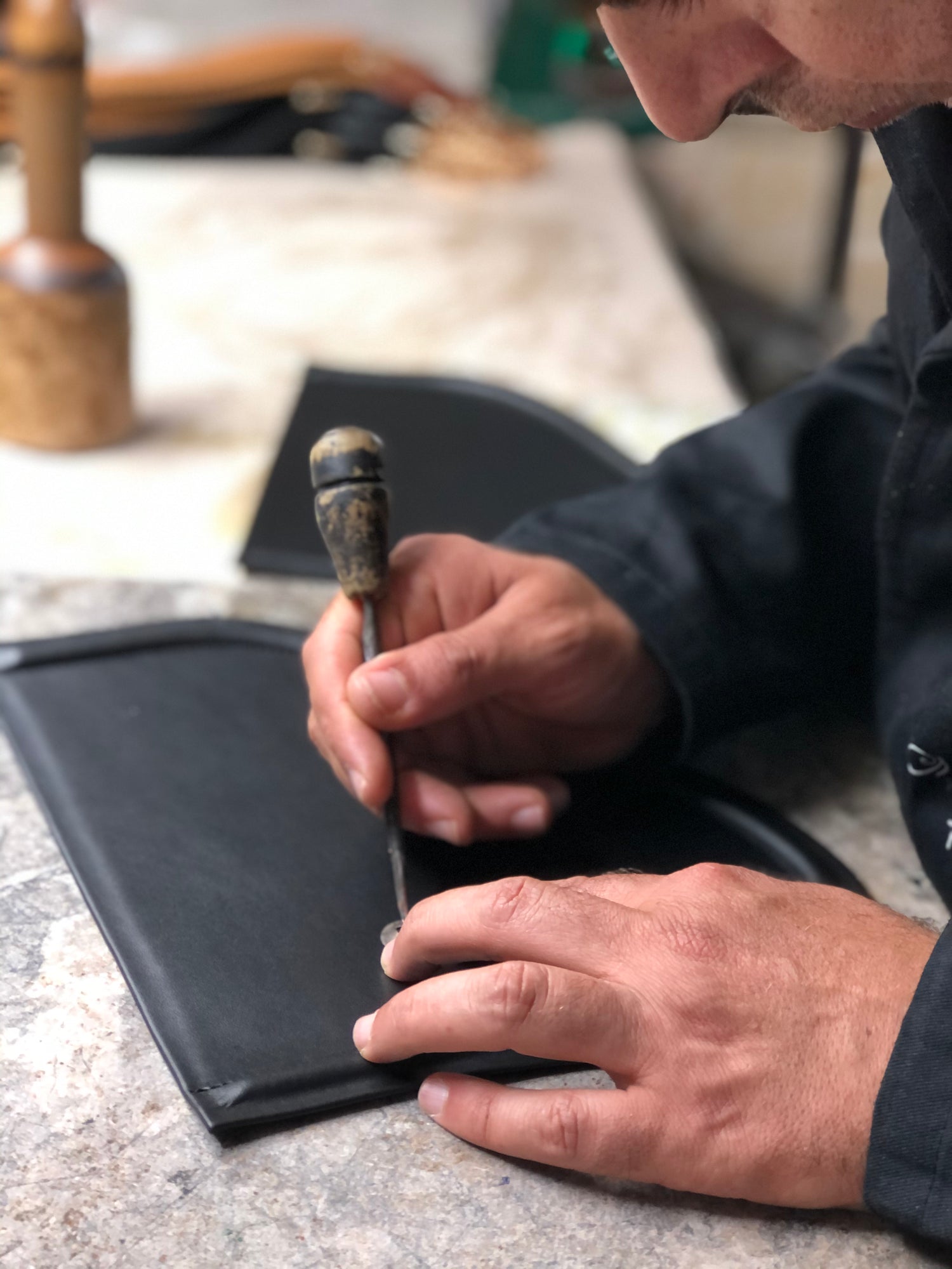 Dans notre atelier, chaque pièce est façonnée à la main avec minutie, passion et respect des matières nobles. Derrière chaque couture, il y a un geste précis, un savoir-faire unique, et la volonté de créer un sac qui raconte une histoire : la vôtre.