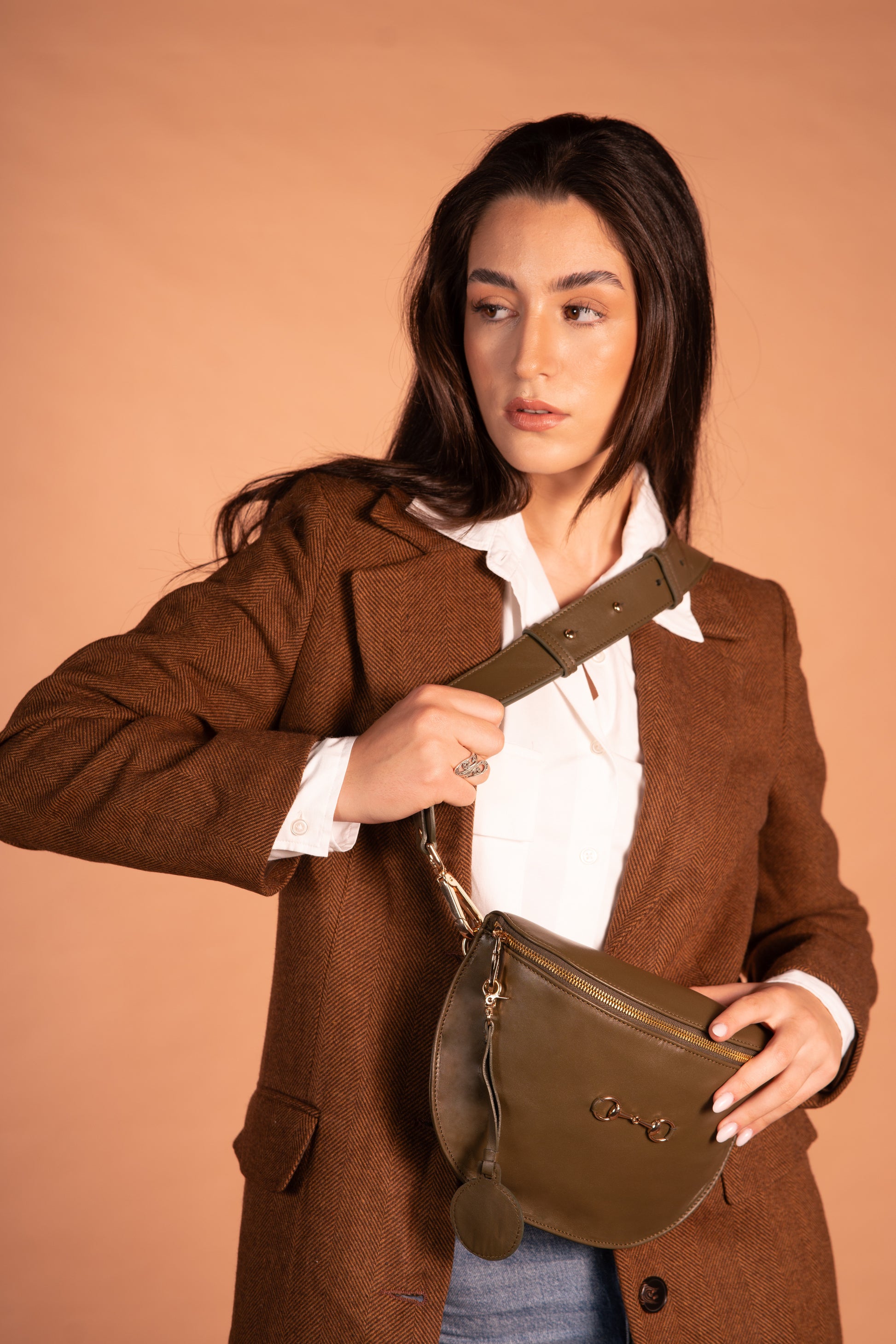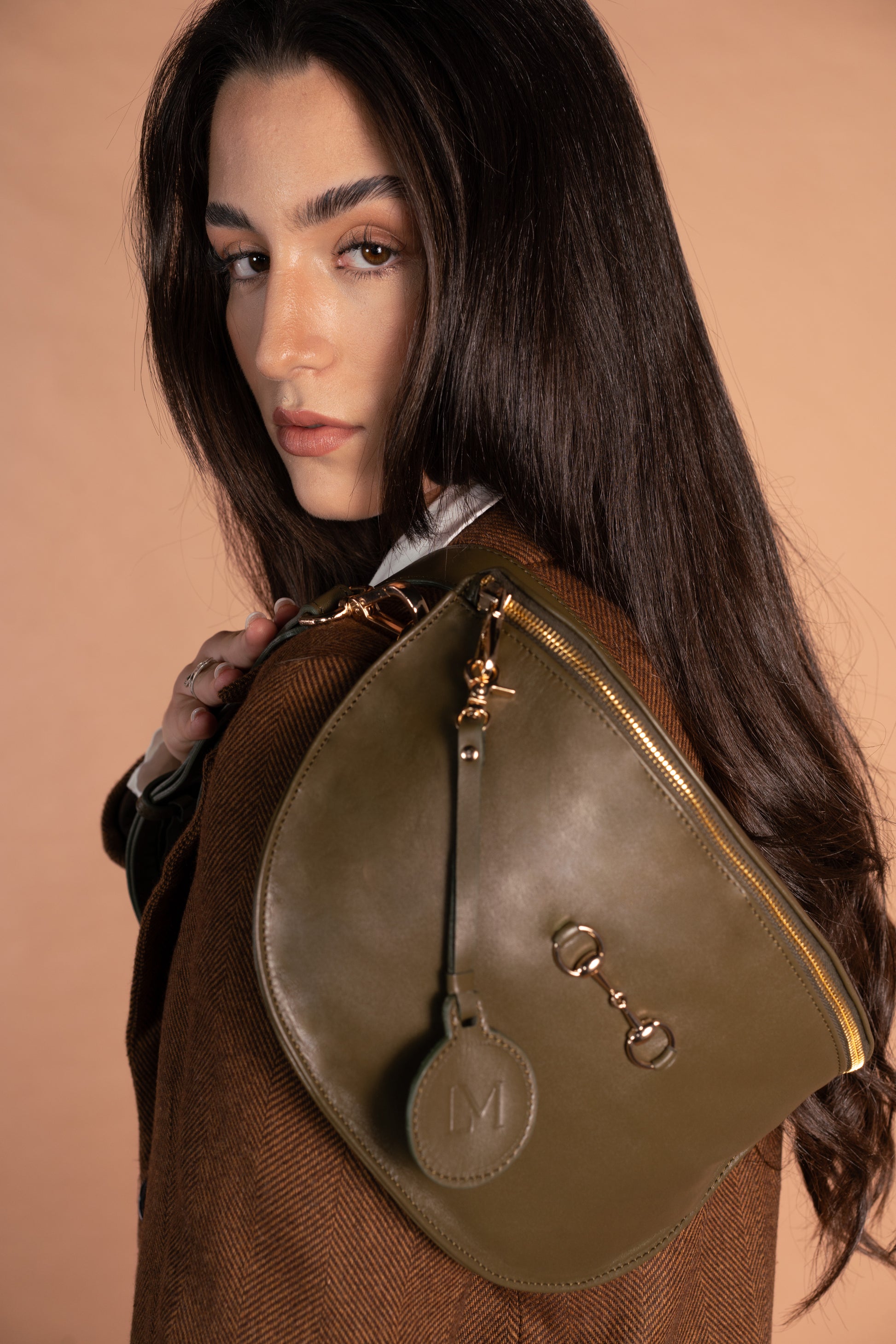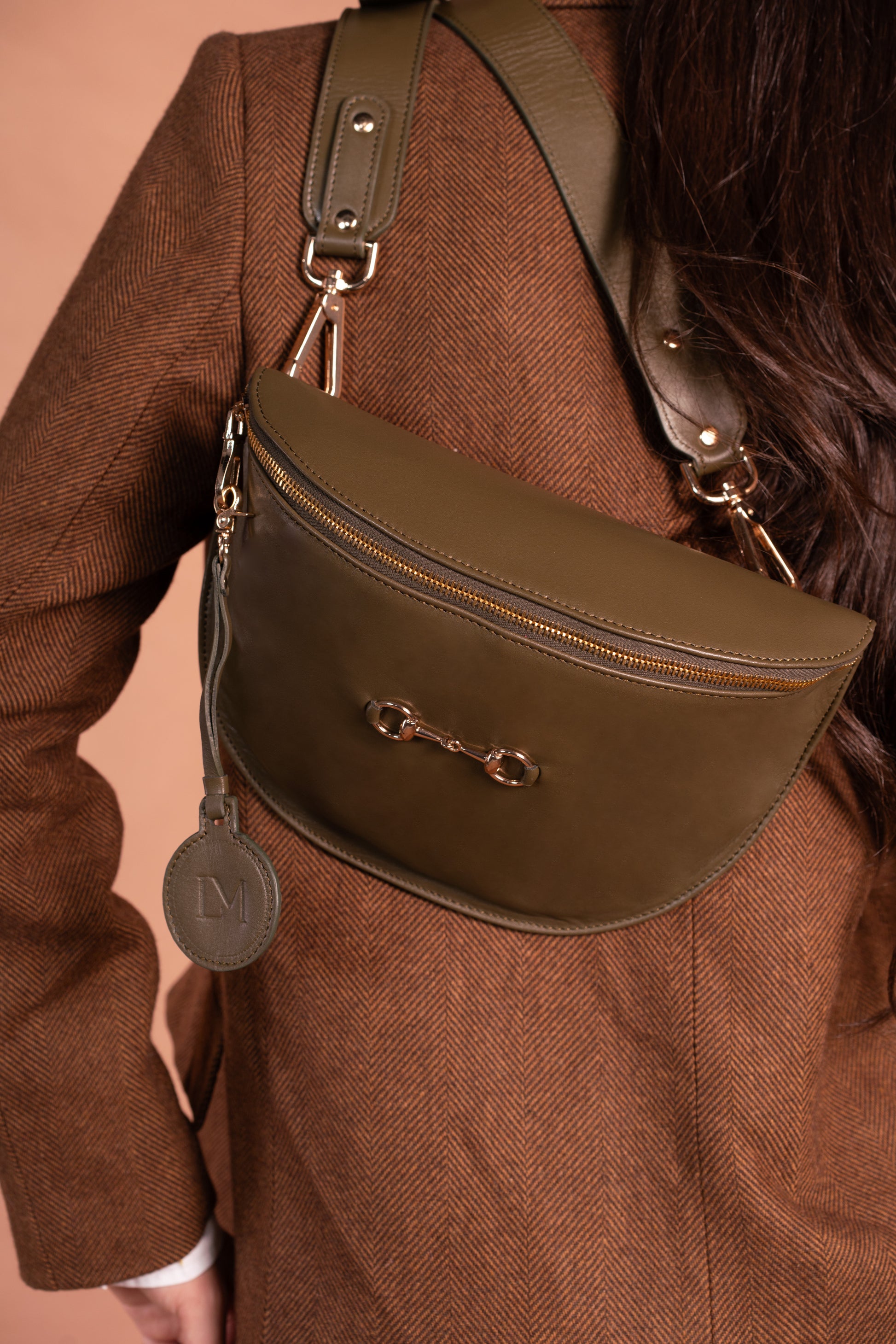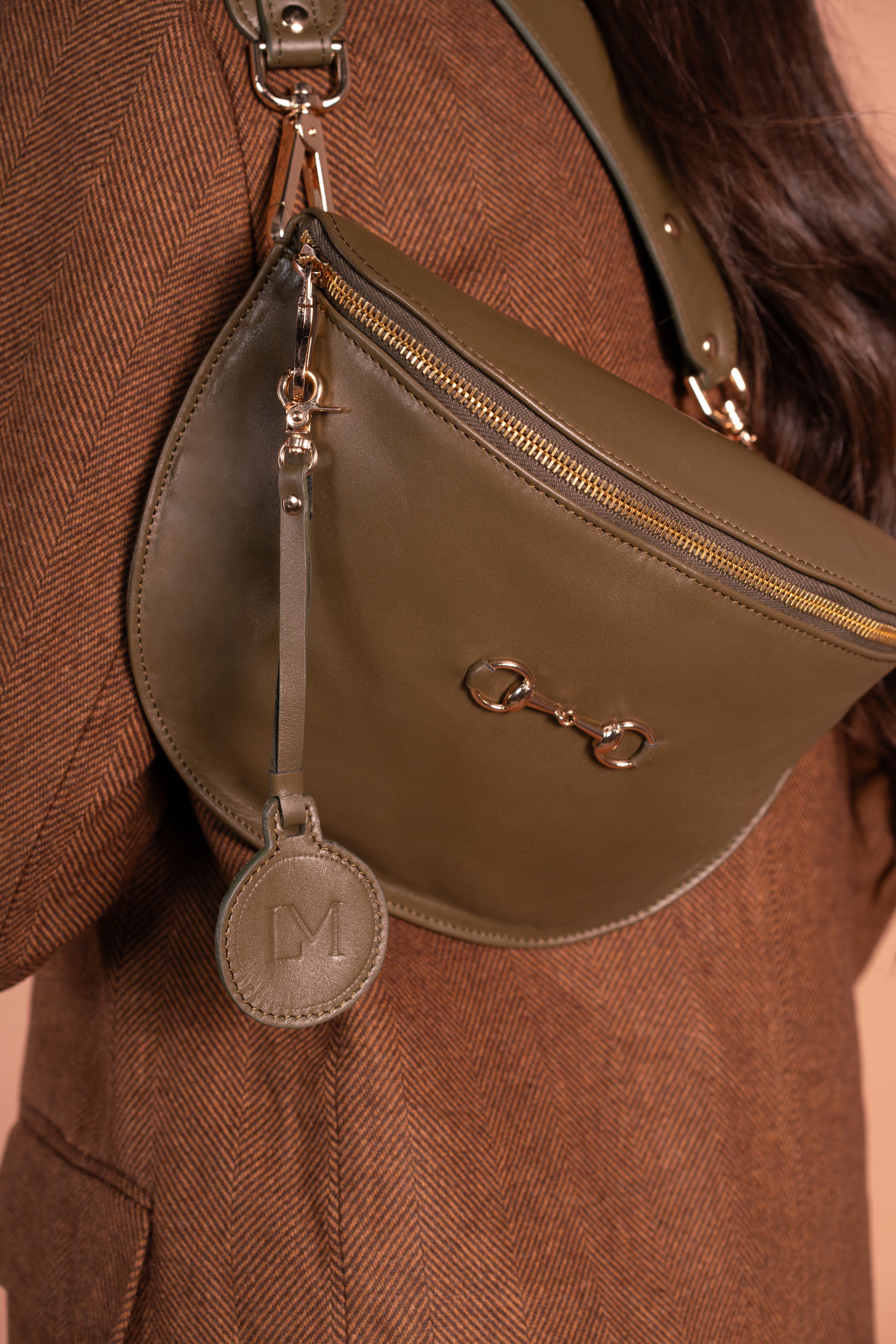 La Banane Diane est un petit sac avec une bandoulière associé qui peut s’enlever à l’aide de deux jolis mousquetons , elle a une poche à l’intérieur, elle est fabriqué en cuir 100% vachette kaki avec sa bandoulière cuir . Elle peut se porter à l’épaule ou croisé .